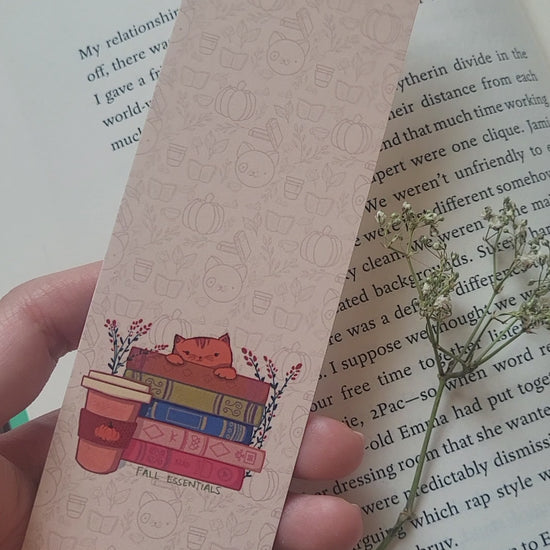 Get your paws on this purr-fect Fall Bookmark, complete with all your autumn essentials: a cozy cat, a steaming pumpkin spice latte, and a stack of books. Your reading experience just got a whole latte better!